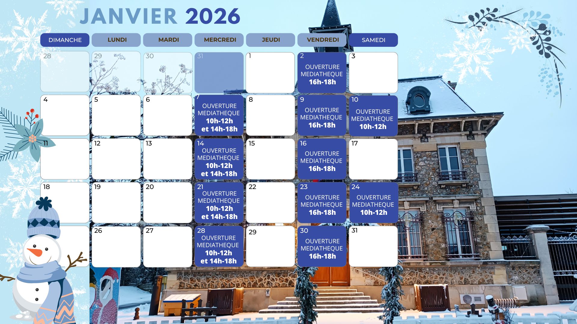 La médiathèque vous accueille les :
